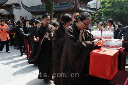 2014年5月6日(农历四月八日),七塔禅寺在圆通宝殿前举行了一年一度的盛大浴佛法会,同时,为响应浙江省委省政府提出的“五水共治”大政及省民宗委提出的“五水共治,四教同行”号召,我寺在举行浴佛法会之际发动信徒积极捐款,以支持“五水共治”战略。本次法会计有近五百余人参加,法会庄严圆满,现场组织有序,筹集善款顺利,本次法会举行非常成功。