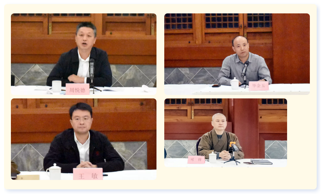 座谈会由浙江省民宗委宗教研究服务中心主任金茹主持,省民宗委宗教研究服务中心副部长班泰勇等出席座谈会,七塔禅寺监院界义法师、定光法师、常明法师等参与接待,并列席。