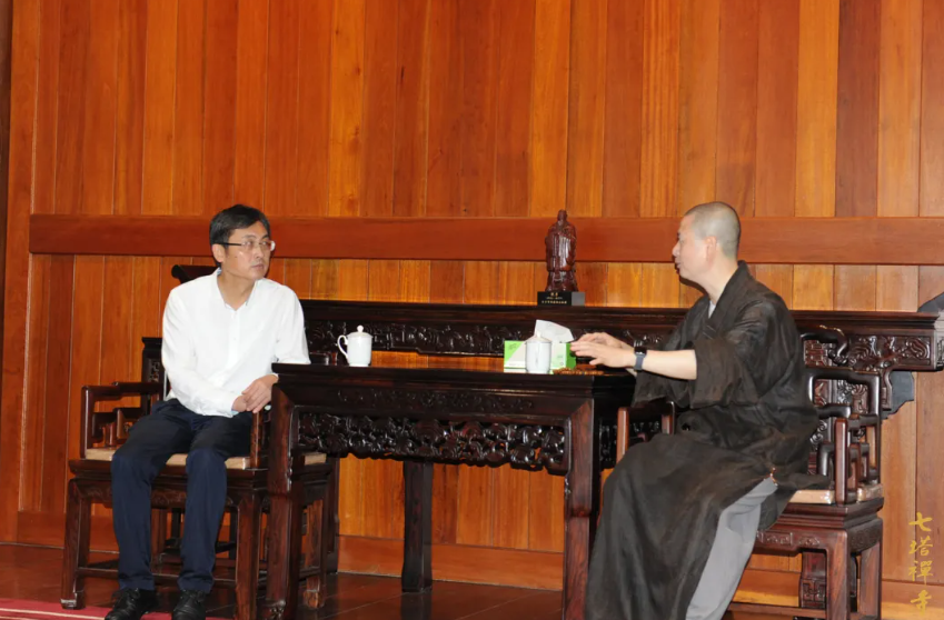 座谈时,可祥法师向严士平部长介绍:七塔禅寺这座古寺,现已成为宁波历史文化的重要组成部分,展示着宁波发展的轨迹,也是宁波佛教文化的主地标和对外交流重要窗口。寺院以道风立寺,以文化兴寺的理念将长期坚持。严士平部长高度赞扬可祥法师的远见和管理理念,对他现阶段取得的成绩深表肯定、赞叹!