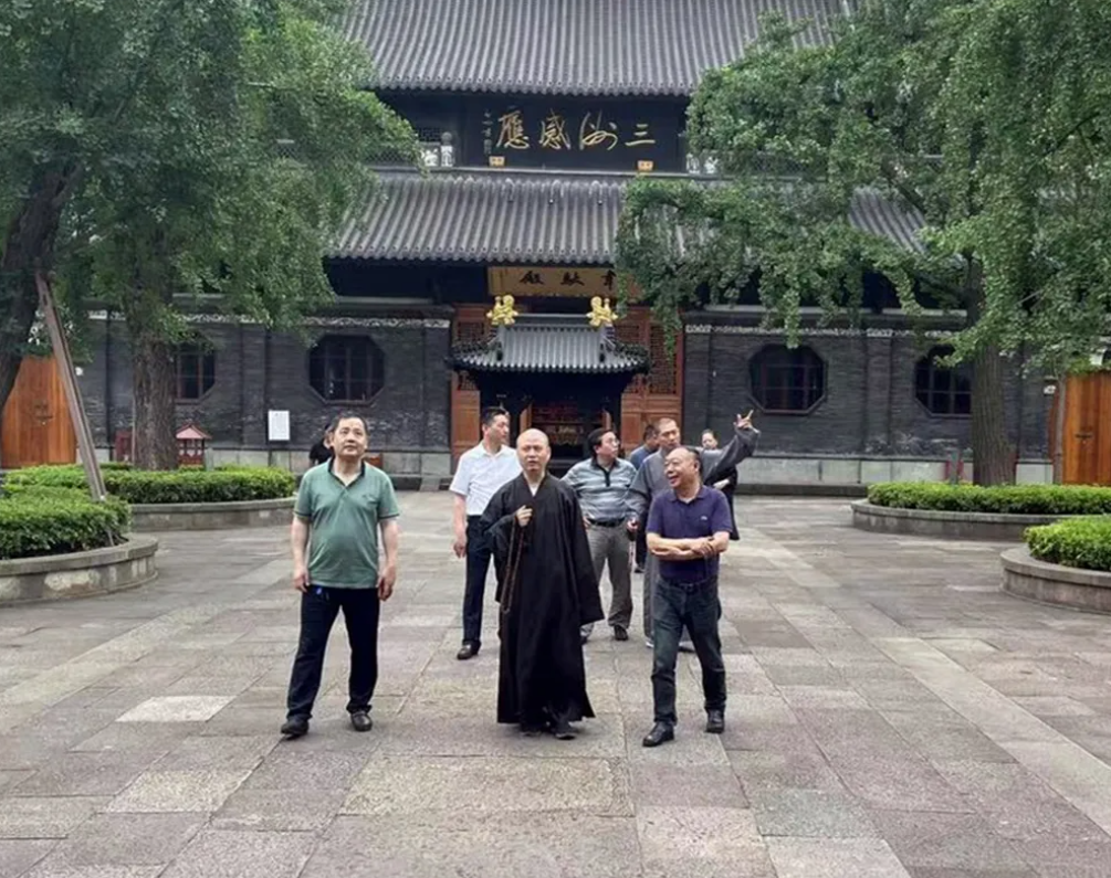 七塔禅寺住持可祥法师热情接待了考察团一行,陪同他们参观了寺院主要殿堂,介绍了寺院历史沿革、古建筑修缮、文物保护和文化建设等情况。