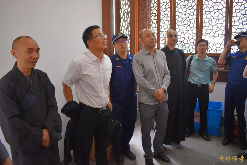 2021年5月25日上午,象山县委统战部副部长、县民宗局局长罗军雷在鄞州区民宗局副局长毕金玉的陪同下,率队来到七塔禅寺,考察消防安全标准化管理工作。
