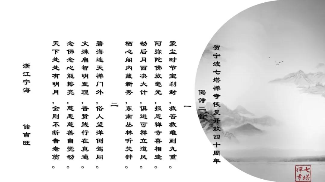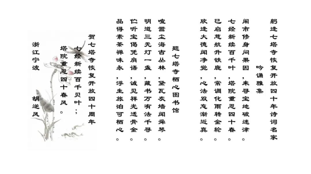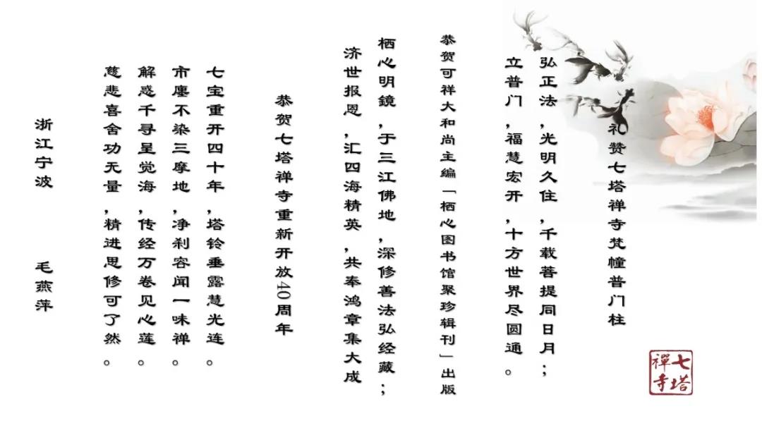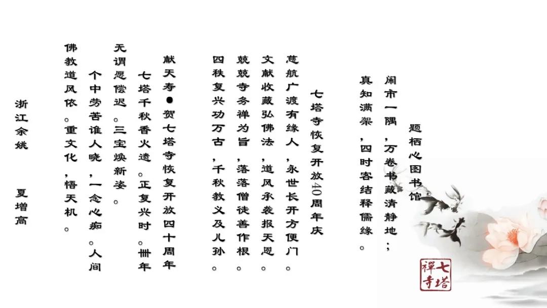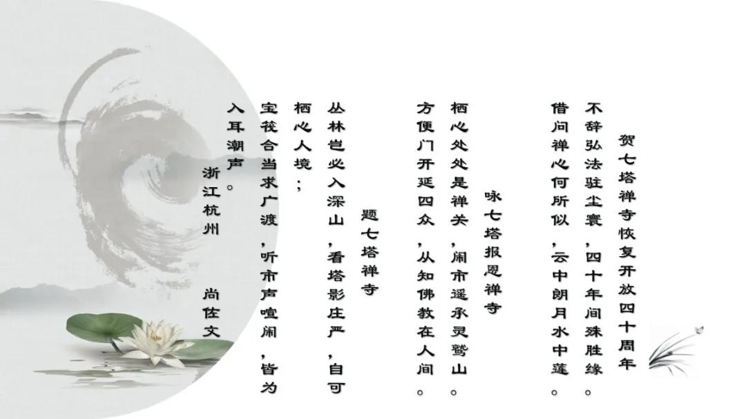 2020年12月27日上午,七塔禅寺报恩大讲堂群贤毕集、济济一堂。纪念七塔禅寺恢复对外开放四十周年诗词楹联吟诵会在这里圆满举行。本次吟诵会共征集到原创作品70余篇,来自浙江省内的20余位诗词名家现场分享了各自作品。