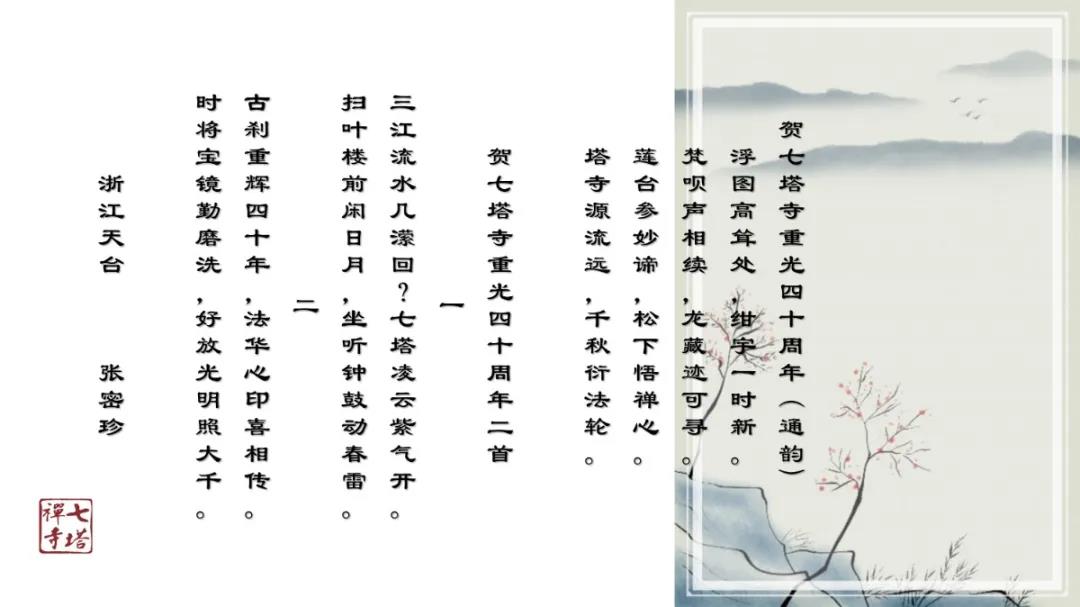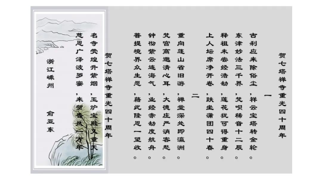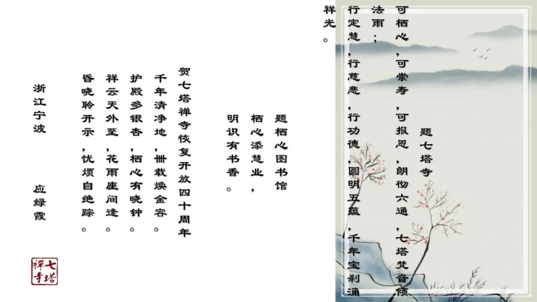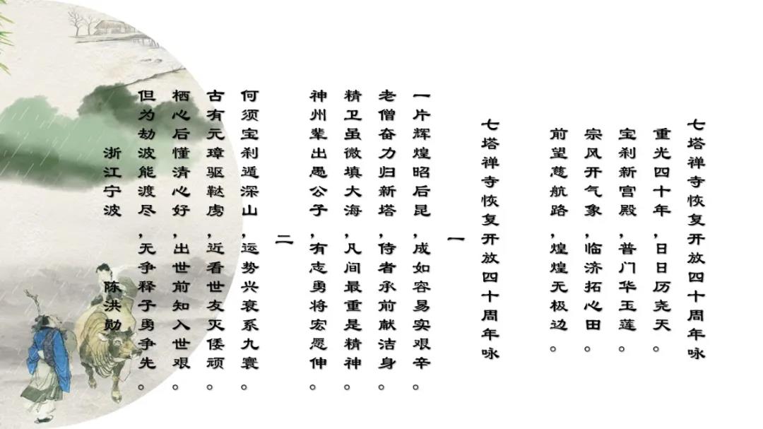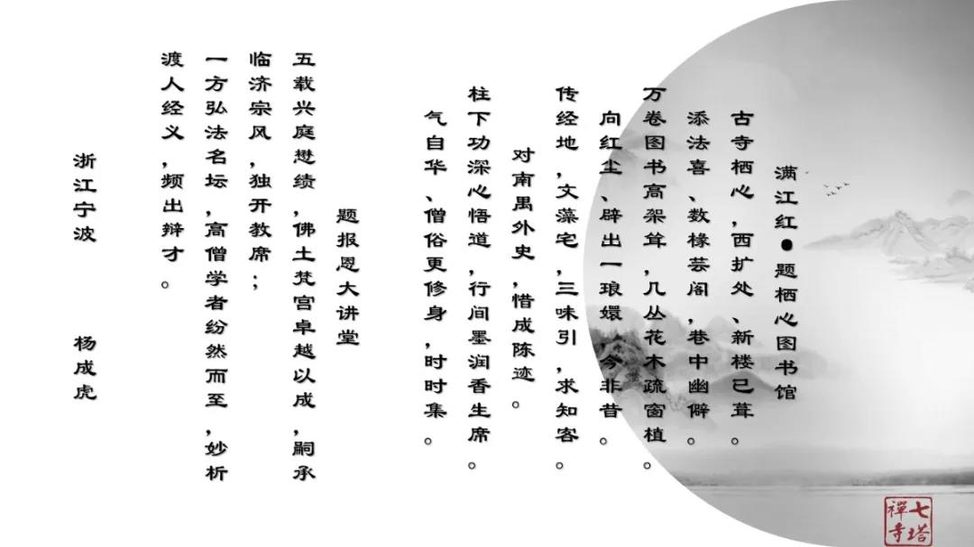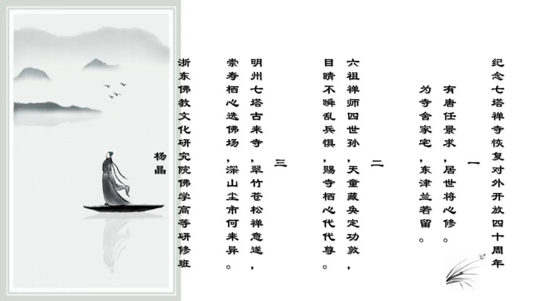 2020年12月27日上午,七塔禅寺报恩大讲堂群贤毕集、济济一堂。纪念七塔禅寺恢复对外开放四十周年诗词楹联吟诵会在这里圆满举行。本次吟诵会共征集到原创作品70余篇,来自浙江省内的20余位诗词名家现场分享了各自作品。