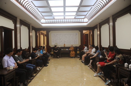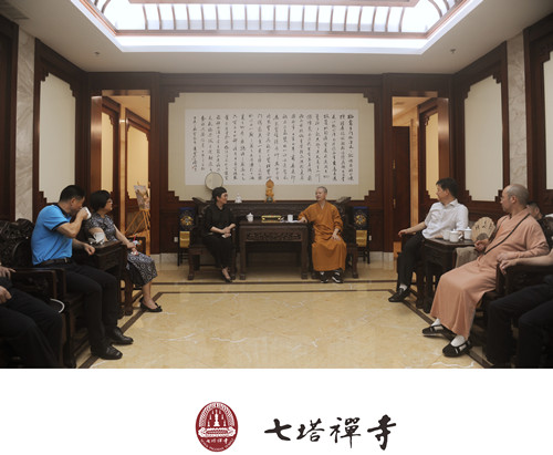 参观结束后,宾主双方进行了友好交流。可祥法师表示,近二十年来,在市、区党委政府的支持下,七塔禅寺依法依规、科学有序地完成了古建修葺和“西扩工程”。当前七塔禅寺正在持续推进寺院文化建设和人才培养工作。文化建设方面以挖掘、整理寺院历史文献,开展各类学术活动为主;人才培养上,鼓励年轻僧人继续求学深造,精研义理。希望真正培育出一批在义理研究上有水平,在寺院管理上有能力的年轻法师。