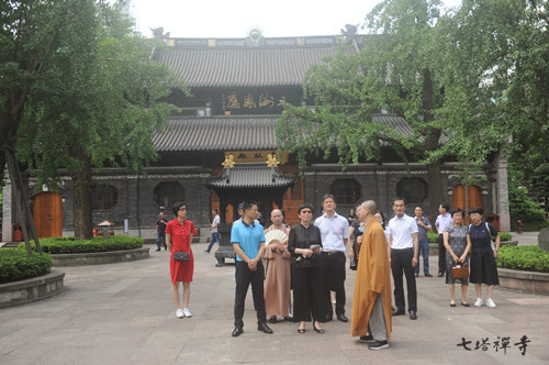 2020年8月11日上午,上海松江区人大常委会副主任钱秋萍一行11人在宁波市人大常委会民宗侨外工委主任王爱民,人大常委会民宗侨外工委副主任、二级巡视员那雁翎,宁波市民宗局党组成员、二级巡视员李伟波等的陪同下,来到七塔禅寺考察寺院管理工作。