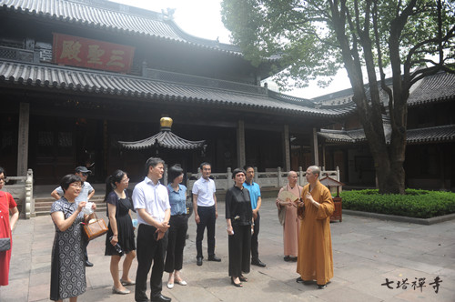 上海市松江区人大常委会侨民宗工委主任成尔新,人大常委会研究室主任、侨民宗工委副主任杨桂龙、松江区区委统战部副部长、民族宗教办主任严俊,松江区人大常委会委员、区佛教协会会长、西林禅寺方丈悟端法师等参加了考察活动。七塔禅寺监院界义法师、常明法师,衣钵允照法师参加了接待。