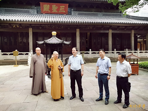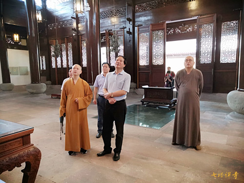 2020年7月22日下午,宁波市政协副主席高庆丰,市政协文化文史委主任陈银绍、副主任李荣来到七塔禅寺调研寺院历史建筑保护与文化建设工作。