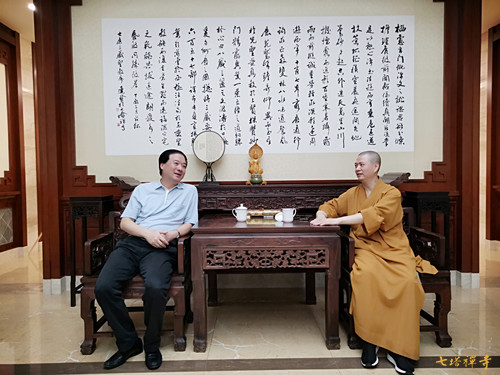 在座谈时,可祥法师向高庆丰副主席汇报了栖心图书馆的藏书建设、藏书结构、藏书体系以及运行效果;浙东佛教文化研究院教学与文化发展方向情况等。高副主席说,开展佛教义理研究,建设佛教文化,是佛教中国化发展的需要,希望七塔禅寺坚持既定方向,积极作为,为传统文化繁荣发展贡献力量。
