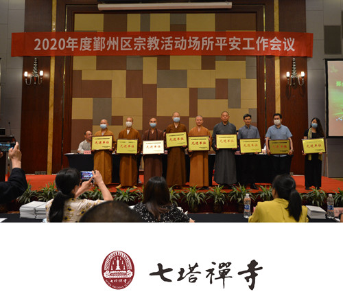 2020年6月18日下午,2020年度鄞州区宗教活动场所平安工作会议在鄞召开。宁波市民宗局党组副书记、副局长周悦德,鄞州区委常委、统战部部长陈虹,鄞州区委统战部副部长、民宗局局长荆英姿等出席会议。七塔禅寺被评为“2019年度鄞州区平安宗教活动场所先进单位”。监院允成法师应邀向会议作《七塔禅寺消防安全管理经验总结报告》。