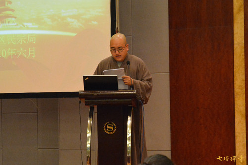 ▲ 允成法师作《七塔禅寺消防安全管理经验总结报告》