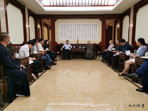 座谈会上讨论了两项活动的参与单位、前期筹备、活动时间、活动流程等内容,确定由七塔禅寺协办“浙江省平安宗教活动场所经验交流暨消防安全标准化管理‘百优争创’启动仪式”。