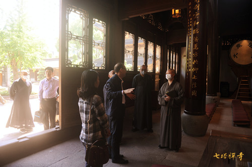 2020年5月12日下午,嘉兴市委统战部部务会议成员、民族宗教事务局副局长马继宁一行8人,在宁波市民宗局党组副书记、副局长周悦德的陪同下,来到七塔禅寺参访调研。
