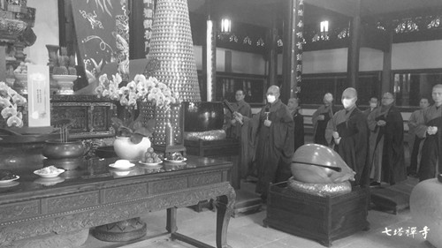 七塔常住为抗疫烈士和逝世同胞诵经回向