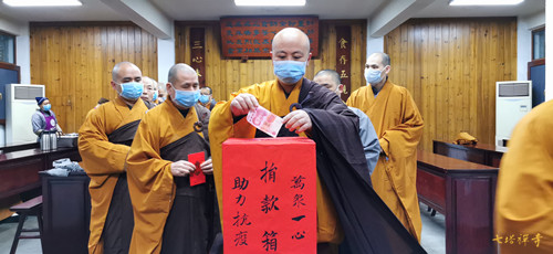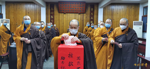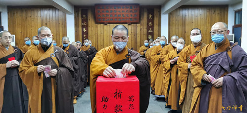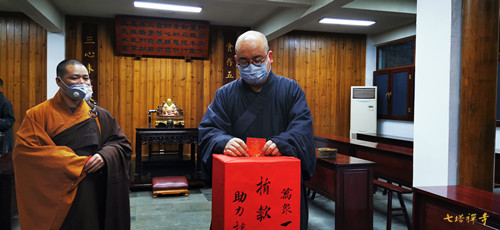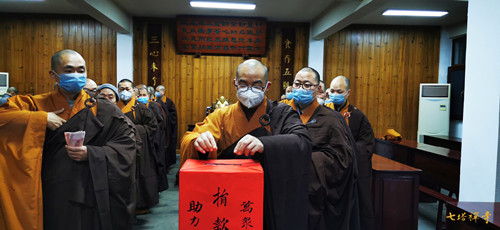 疫情发生以来,七塔禅寺常住迅速应对,暂停对外开放,取消了节日期间的一切法务活动,关闭了栖心图书馆和停车场,举行息灾祈福法会,为肺炎患者和奋战在一线的医护人员祈福。31日上午,全体常住法师们率先垂范,在寺院举行了募捐活动,募得善款6万余元。