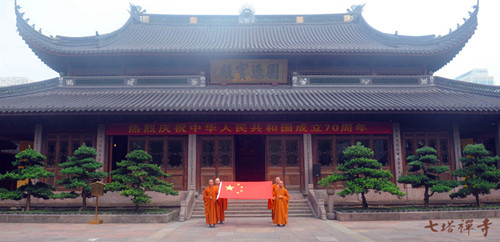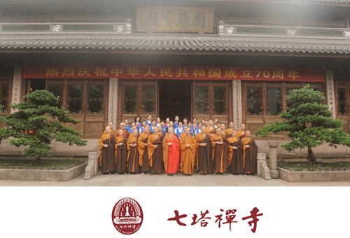 2019年9月30日上午,七塔禅寺举行中华人民共和国成立70周年升国旗仪式暨祈福法会。七塔禅寺常住、义工、工作人员、信众等共同参加仪式,以此感念国土、父母、师长、众生四重恩德,祝福祖国繁荣昌盛。