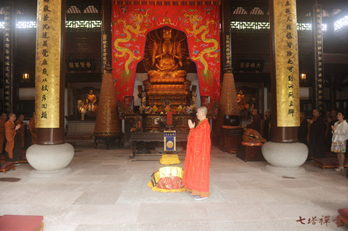 上午10时30分许,圆通宝殿内炉香乍热,梵音缭绕,七塔禅寺住持可祥法师主法,拈香祝祷,并引领两序大众讽诵经文,祈愿佛光加被、风调雨顺、国泰民安。法会现场威仪严整,清净祥和,众善信法喜充满。