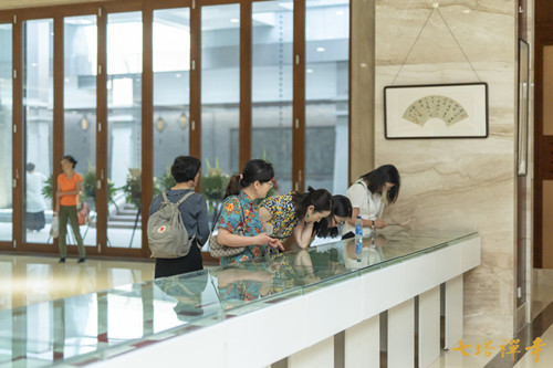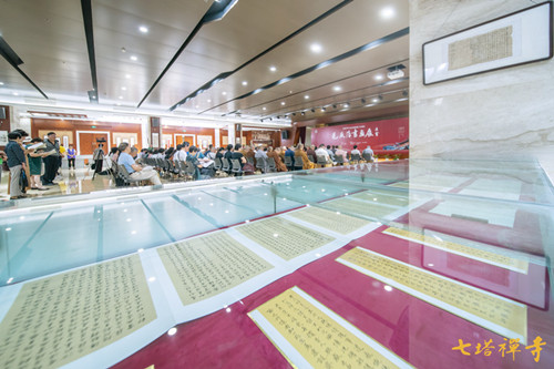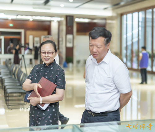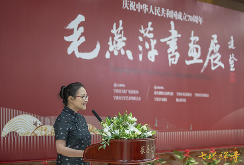 2019年9月8日上午,由宁波市文化广电旅游局、宁波市文学艺术界联合会主办,浙东佛教文化研究院、宁波市书法家协会、宁波市美术家协会、宁波书画院、栖心图书馆联合承办的“庆祝中华人民共和国成立70周年——毛燕萍书画展”在七塔禅寺报恩大讲堂开幕。