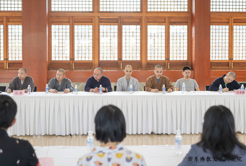 三、办出效率。因地制宜地发挥综合优势,提升办学水平和质量。加强与地方院校的交流,发挥合作办学的优势;充分利用栖心图书馆、报恩大讲堂、浙东地方文献收藏中心、浙东佛教文献收藏中心的教研资源,发挥就近办学优势;着眼都市丛林寺院,贴近百姓生活,发挥服务大众的优势。