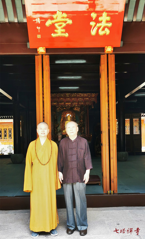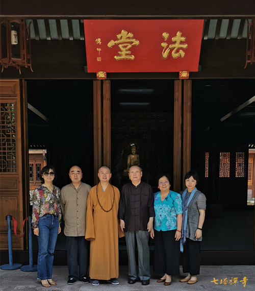 2019年8月2日上午,南京师范大学资深教授、书法博士生导师尉天池及其家人在宁波大学音乐学院院长俞子正的陪同下参访七塔禅寺,受到浙东佛教文化研究院院长、七塔禅寺住持可祥法师的热情接待。