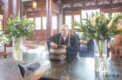 2019年7月10日,日本永平寺监院小林昌道带领的参访团一行8人参访七塔禅寺,受到宁波市佛教协会副会长、七塔禅寺监院法净法师及常住执事的热情接待。