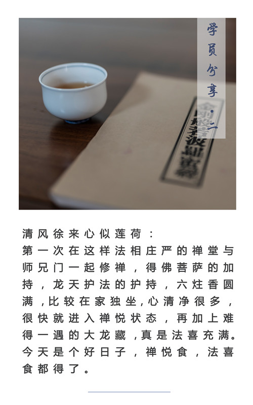 此次“都市丛林生活禅”一日禅修的主题是 “栖心自在,禅意生活”。课程在传承传统的禅坐方法基础上,结合研读经典、禅茶交流、过堂用斋、晚课、出坡劳作等丛林生活。邀请曾任广东省佛学院法师、现任宁海集福寺住持允成法师作禅法指导,采取老参辅导新学的教学模式,指导学员们通过一天的精进禅修,让学员们摆脱现今生活的紧张节奏,体味自我身体与心灵的感触,在静与动的交错中,感受自我,回归本真,在入世的当下,不断参悟,开发自己的智慧,获得出世的境界,实现个人价值最大化。