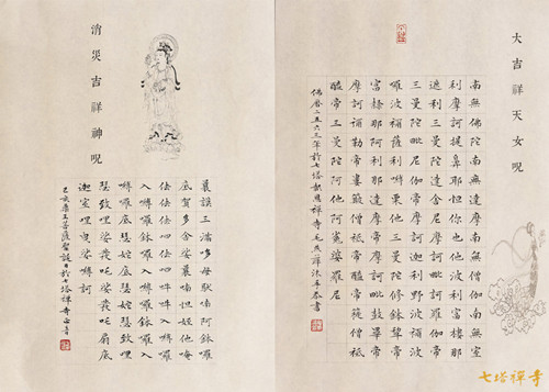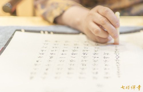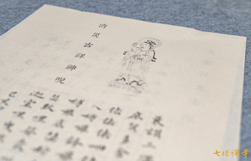 2019年6月1日(农历四月廿八),药王菩萨圣诞,值此吉祥日,七塔禅寺举办第六届抄经培训活动,甬城书法爱好者近百人集体恭抄《消灾吉祥神咒》《大吉祥天女咒》,以此功德祈福国泰民安、风调雨顺。抄经培训由宁波市书法家协会副主席毛燕萍老师授课,监院法净法师主持。