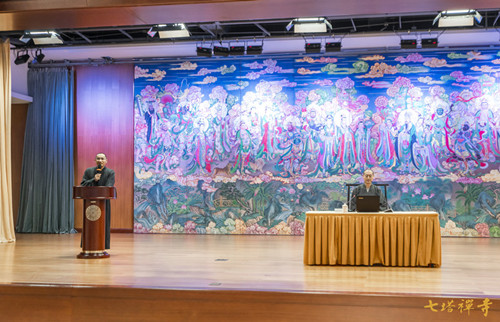 2019年4月28日下午,杭州佛学院副院长、杭州灵隐寺堂主、中国逻辑学会常务理事、浙江工商大学教授慧观法师应栖心图书馆的邀请,在报恩大讲堂作“‘食堂’语出天竺及其与佛门关系之探讨”的专题讲座。七塔禅寺常住、栖心图书馆读者、佛学爱好者在场聆听,座无虚席。讲座由监院法净法师主持,住持可祥法师总结。