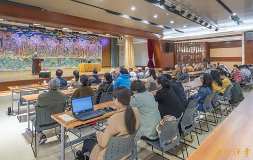 可祥法师作本次讲座总结:慧观法师围绕“食堂”之词源及其与佛门之关系所展开的多方位考察,为在场听众厘清了其诞生、翻译、传播乃至回流的过程,令我们耳目一新。司空见惯的“食堂”一词,其背后有着悠久的佛教历史文化底蕴,可谓“百姓日用而不知”。采取考察词源,厘清演变与发展脉络,犹“如灸病得穴,众患皆除”(《摩诃止观》)的方法,这种严谨的治学过程,就是“研磨”的过程。