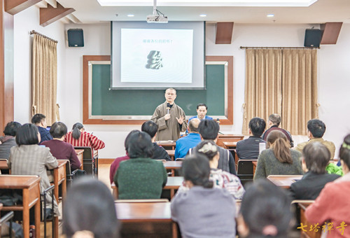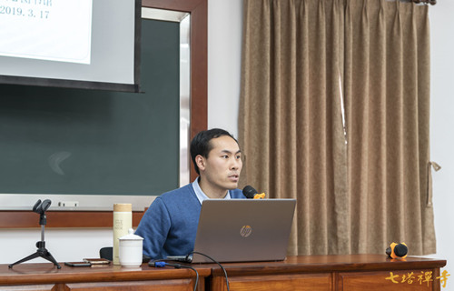 2018年3月17日,宁波大学人文与传媒学院历史系副主任,浙东佛教文化研究院执行院长,日本印度学佛教学会、佛教心理学会会员张凯博士应栖心图书馆邀请,作《佛教中国化与中国化佛学禅宗漫谈》的专题学术讲座。讲座在七塔禅寺禅学堂科教室举行,由监院法净法师主持,住持可祥法师总结,七塔禅寺僧众、栖心图书馆读者、甬城佛学爱好者在场聆听。