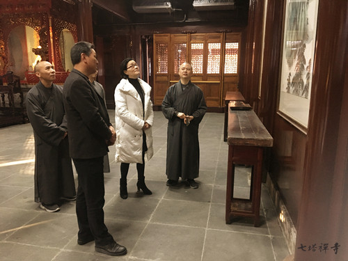 2019年2月2日,市委统战部副部长、市民宗局局长金黎萍,市民宗局党组副书记、副局长周悦德一行在住持可祥法师及主要执事的引领下,对七塔禅寺春节期间进香活动安全工作进行检查。金黎萍局长一行先后详细查看各大殿堂安全情况,并听取了可祥法师关于七塔禅寺春节期间安保实施方案的汇报。