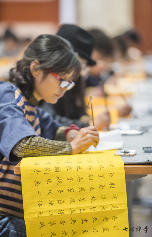 今日农历九月十九(2018年10月27日),恭逢观世音菩萨出家日,为弘扬观世音菩萨慈悲救世、广度有情的宏愿,感恩菩萨的大悲愿力,七塔禅寺值此殊胜日举办第四届抄经培训班,邀请甬城佛法、书法爱好者共抄《心经》,以此功德,普及于一切。