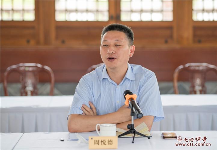 在座谈会上,鄞州区委统战部副部长、区民宗局局长严伟强介绍了鄞州区的宗教历史沿革、文化底蕴、对外交流等情况,同时,他希望宗教学术界能更多关注寺院制度文化研究。宁波市民宗局党组副书记、副局长周悦德介绍了宁波宗教活动场所的数量分布和教职人员备案情况,他希望宗教学术界加强我国城镇化率提高与宗教均衡发展和宗教服务供给的研究。同时,他高度评价七塔禅寺近年在管理、弘法、慈善、文化建设方面取得成绩和经验,为宁波宗教活动场所规范化管理树立了榜样,是历史文化名都名城宁波对外交流的一张名片。