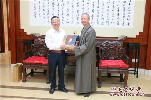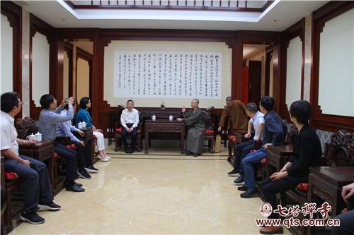 2018年5月4日,浙江省衢州市市委统战部部长傅根友一行莅临七塔禅寺调研工作,受到七塔禅寺住持可祥法师等的热情接待。