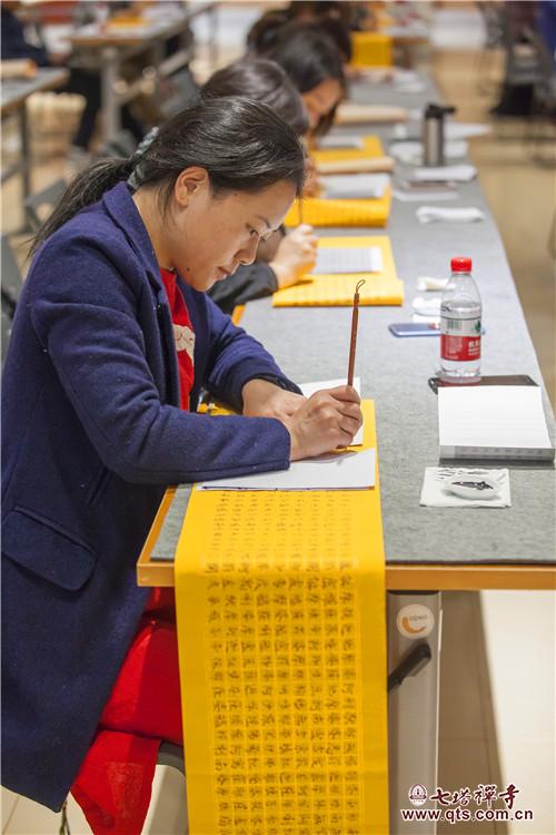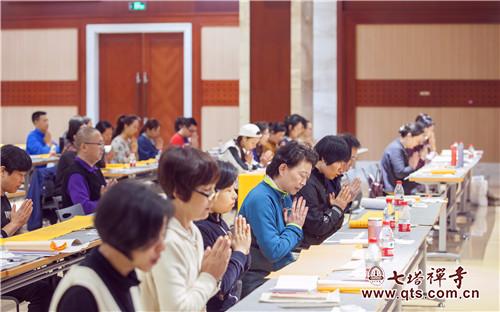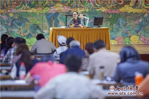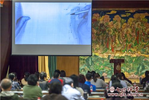 2018年4月21日,七塔禅寺在报恩大讲堂举办第二届抄经培训班。监院法净法师主持,宁波市书法家协会副主席毛燕萍老师主讲,七塔禅寺居士、义工菩萨及甬城书法爱好者120人参加。