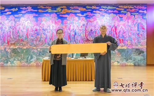 抄经活动结束时,毛老师向七塔禅寺常住赠送了她所抄写的《大悲咒》。学员们深受法益,身心踊跃,在法净法师带领下,齐诵《大悲咒》与《回向偈》,将此次抄写佛经的功德回向十方法界一切众生,祝福各位学员身心安康,家庭幸福。