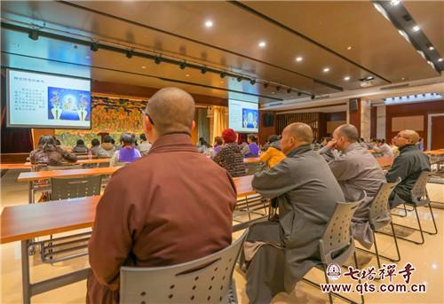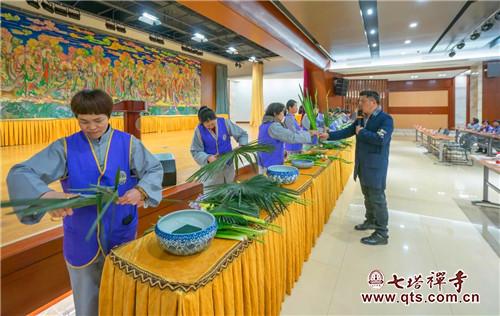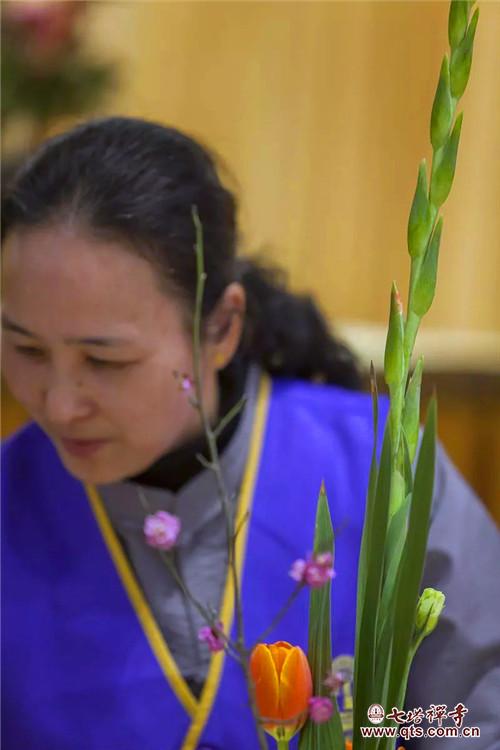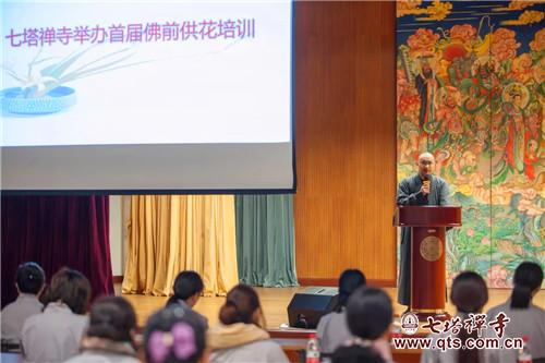 2018年3月2日,以“身依七塔,手植善因”为主题的佛前供花培训在七塔禅寺报恩大讲堂举办。本次活动诚邀国家花艺师王存周为指导老师,监院法净法师主持,七塔常住部分义工和花艺爱好者60余人参加培训。