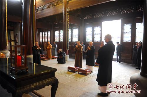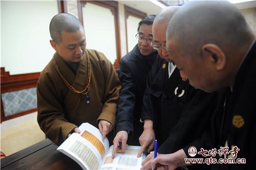 七塔禅寺常住参与接待的执事有:监院界义法师、监院法净法师(栖心图书馆馆长)、知客照果法师、僧值定贤法师、典座常明法师、副寺允通法师、知宾普明法师等。