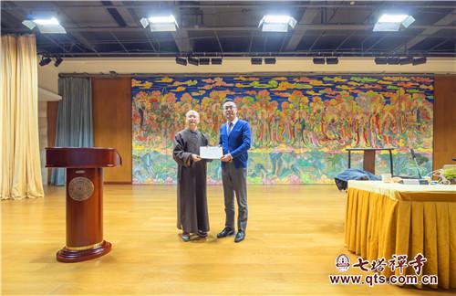 讲座结束后,王教授向栖心图书馆馈送其主编的《中国佛教影像集成》(北京卷,上下册),以及《汤用彤眉批金陵高僧传》(五册)。可祥法师代表栖心图书馆向王颂教授颁发了图书捐赠证书。