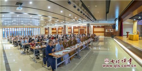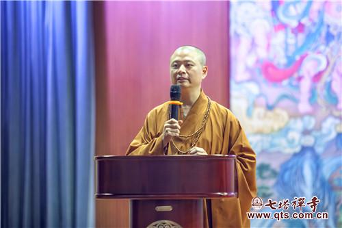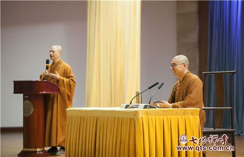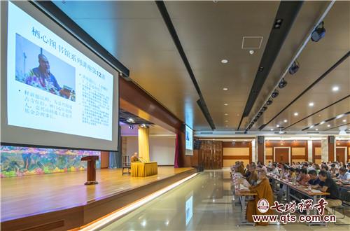 2017年9月2日下午,嘉兴圆通古寺住持新愿法师,在七塔禅寺报恩大讲堂作题为“《金刚经》之吾心何住?”的学术讲座。讲座由可祥法师主持及总结评述,常住僧众及栖心图书馆200余位读者赴会聆听,现场气氛活跃生动。