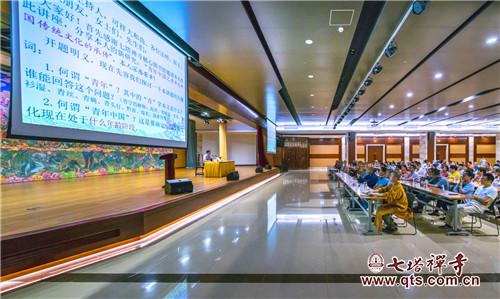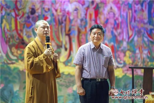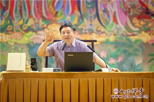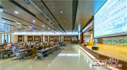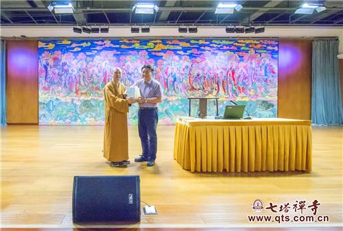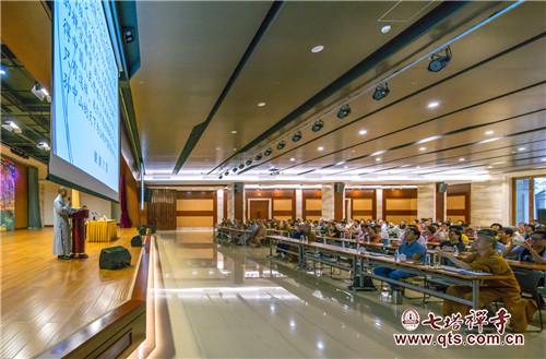 2017年7月9日下午,山东大学历史文化学院、澳门理工学院的荣休教授谭世宝,在七塔禅寺报恩大讲堂作了题为“传承与挑战:青年中国之汉字文化财富的返本创新——兼比较中印佛教的历史命运”的学术讲座。讲座由法净法师主持,可祥法师总结评述,常住僧众及栖心图书馆200余位读者赴会聆听,现场气氛热烈。