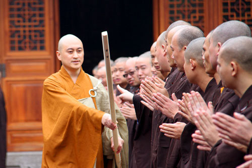 下午2时,大初律师在五观堂向众新戒作“受戒真义”的佛学讲座。大初律师说,受戒不是为了一张戒牒,而是修戒体,了解戒法,学习规章,切实受益佛法。戒子们应当时刻感恩三宝,在未来的修行路上,继承佛教优良传统,更好地发展佛教。