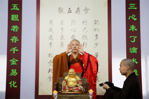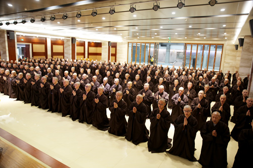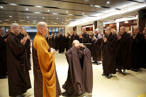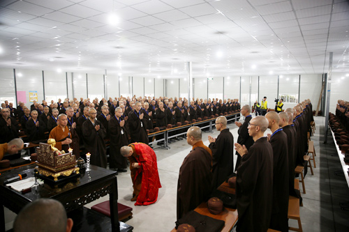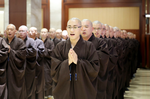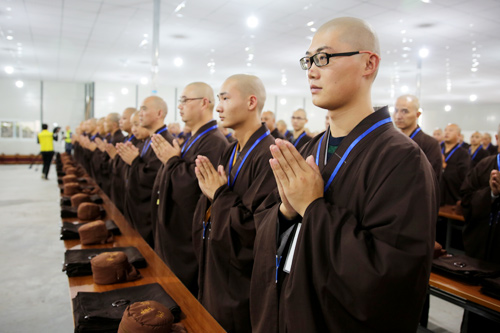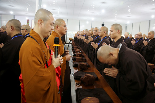 晚7时许,众新戒礼请羯磨阿阇黎怡藏法师登堂说法,为新戒们做审罪忏摩,检测身心,令有犯者如法忏悔,真正做到“罪从心起将心忏,心若亡时罪亦灭;心亡罪灭两俱空,是则名为真忏悔”。忏悔过往,不再造作,从此耐受清净戒法。