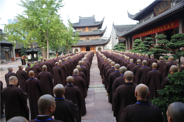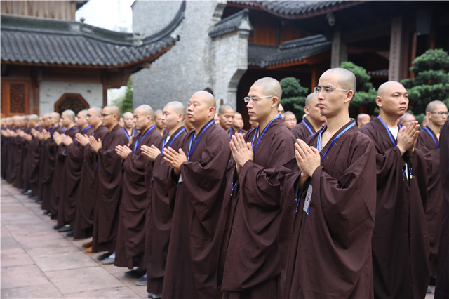 下午2时许,新戒齐集于报恩大讲堂内,继续练习忏摩仪式,端秉一心,重申忏悔。