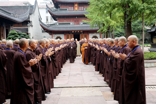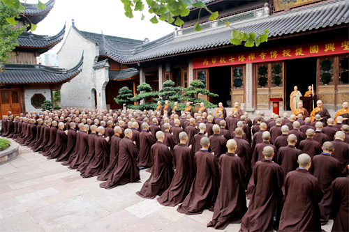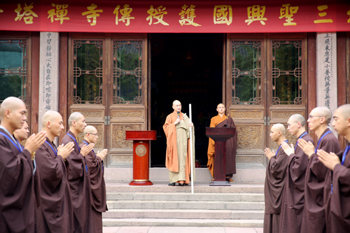 2016年10月24日上午8时许,七塔禅寺传授护国兴圣三坛大戒法会举行请戒礼仪演习。演习活动由开堂大初律师主持,并携同陪堂照果律师、月和律师及诸位引礼师演习如何请戒暨迎请引礼诸师及得戒、羯磨、教授三师的仪式。