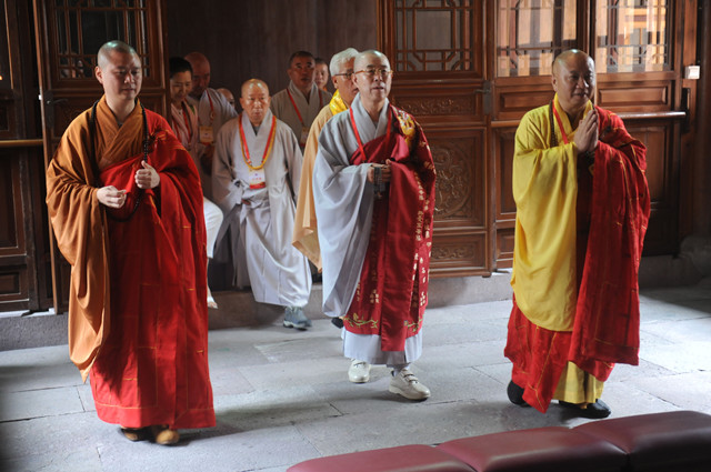 可祥法师致欢迎辞时说,中韩日佛教的代表人士相聚宁波,就三国佛教友好交流历史、维护世界和平等共同关心的重要课题进行了深入探讨,会议增进了彼此的了解与友谊,取得了圆满成功。佛教讲“缘起”,所谓“缘起”,即诸法依各种条件而生起。诸位此次莅临本寺,也是因缘使然。抚今追昔,我们要更加感念无数先辈们结下深厚的法缘道情,并进一步继承和发展。七塔禅寺作为国家汉传佛教首批重点开放寺院,是中国近现代临济宗中兴祖庭,自唐代开山以来与海内外佛教界友好往来绵延不绝,与韩国和日本佛教界的交流尤为密切。我们将继续发扬佛教友好交流的优良传统,积极地开展对外友好交往,广交朋友,普结善缘,为世界和平和人类幸福贡献我们的力量。