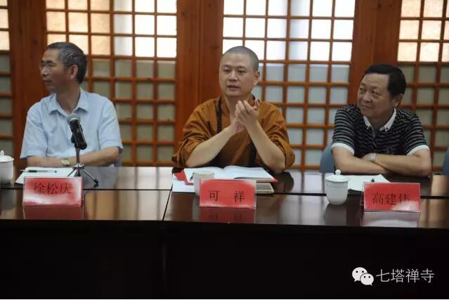 2016年7月14日,武汉市政协副秘书长丁顺清一行,在宁波市政协巡视员、政协社法民宗委副主任徐松庆等陪同下来七塔禅寺参访,受到住持可祥法师等热情接待,双方进行了友好工作交流座谈。
