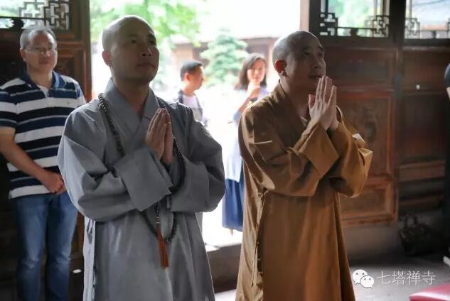 温州市佛协会长智明法师等来七塔禅寺考察