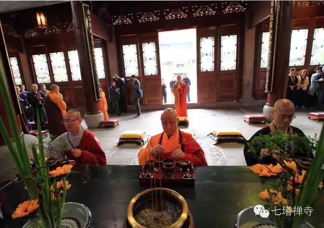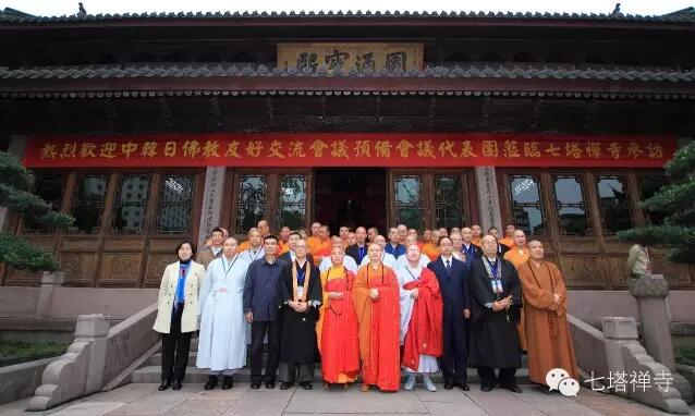 2016年4月13日,第十九次中韩日佛教友好交流会预备会议代表团一行约26人莅临七塔禅寺参访,受到住持可祥法师及两序大众的热情接待。