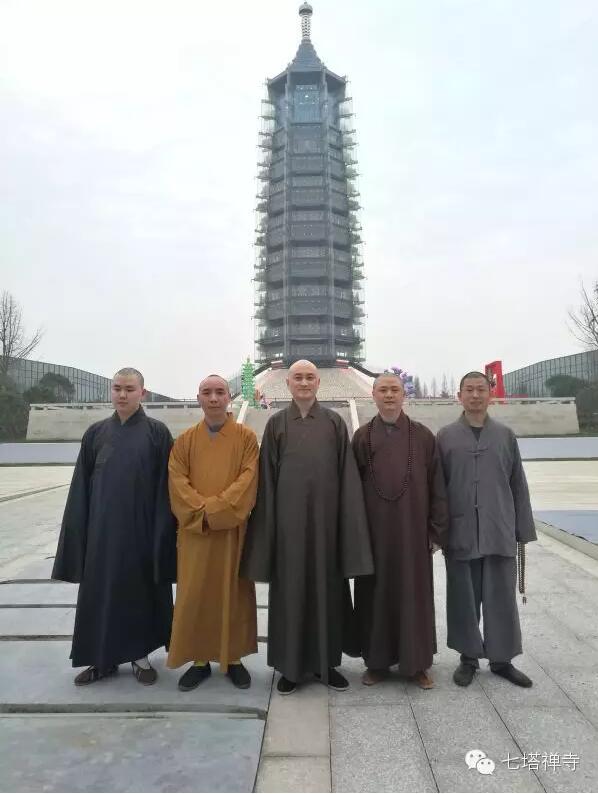 可祥,大初,界义,静贤法师在大报恩寺遗址公园内新建的报恩塔前合影
