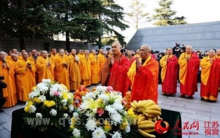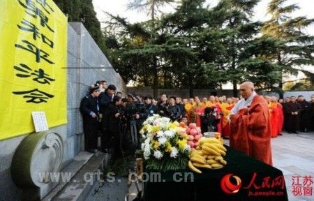 昨天是自2003年以来第11次在江东门纪念馆举行世界和平法会,又是首个南京大屠杀死难者国家公祭日,所以规模更大,南京56座寺院都派高僧参加。来自中日韩三国的108位法师、300多名佛教信众,以洒净结界、发符悬幡、授幽冥戒、告赦供奉等佛教形式,共同告慰逝去生命民众的在天之灵,与世界各国人民一起铭记这段沉痛历史和深重灾难,坚定不移地反对侵略战争,捍卫人类尊严,维护世界和平。(王晟)